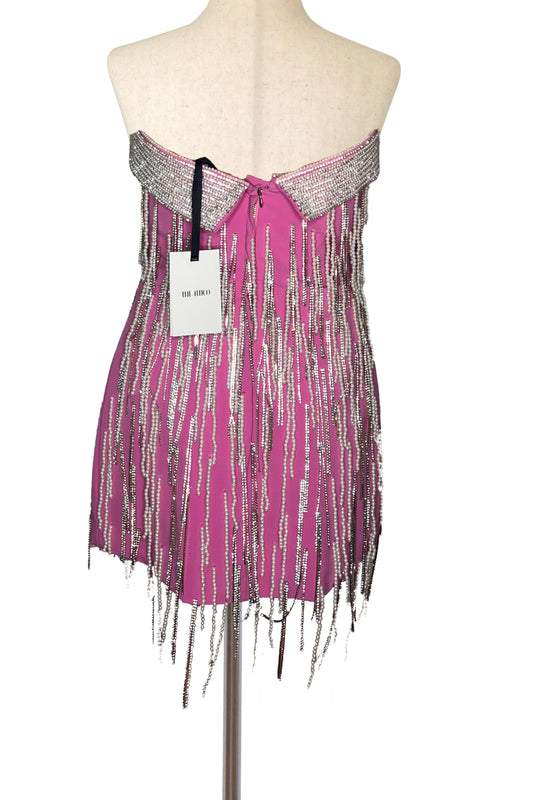 THE ATTICO - Pink Embellished Fringe Strapless Mini Dress W/ TAGS - Size 42